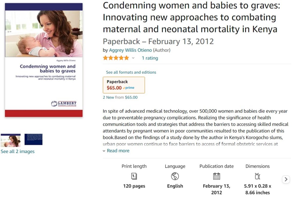 Otieno, AW., (2012). Condemning Women and Babies to Graves: Innovating New Approaches to Combating Maternal and Neonatal Mortality in Kenya. Lambert Academic Publishers: Germany